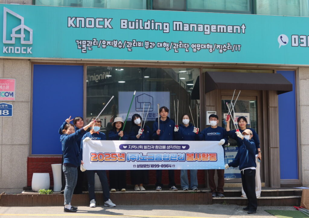 노크종합관리 사회적 활동 노크종합관리는 2024년 예비사회적기업으로 지정되어 일자리 창출을 통한 사회적가치를 실현하는 기업으로 거듭나기 위해 꾸준히 노력하고 있습니다.사회적 취약계층의 주거 공간 관리 지원 사업을 통하여 지역 사회 서비스를 제공하고, 취약계층의 일자리 창출을 통해 사회적가치 실현이라는 목표를 가지고 계속해서 성장하는 노크종합관리입니다 ESG 자원봉사 교육 기업 구성원 모두가 환경(E), 사회(S), 지배구조(G)에 대한 이해를 바탕으로 자발적인 봉사활동의 가치를 인식하고 행동으로 실천할 수 있도록 교육을 실시했습니다. 배수구 클린업 활동 건물 및 인근 지역의 배수구와 도로 측구를 정비하여 침수 방지와 도시 미관 개선에 기여했으며 주민의 생활 안전과 환경 개선에 실질적인 도움을 주는 봉사였습니다. EM흙공 만들기 및 던지기 활동 임직원 모두가 EM흙공을 제작하고 하천에 투척하는 환경 정화 봉사활동을 진행했습니다. EM흙공은 수질 개선과 악취 저감에 효과적인 친환경 정화제로 지역 환경 보호에 기여했습니다. 볼런투어 봉사활동 지역 건물과 주변 생활환경을 직접 점검하며 노후된 배수로의 오염물 제거와 보행로 주변의 간단한 정비 작업을 함께 진행한 활동으로, 주민 이동 동선의 안전성을 높이고 생활권 환경을 보다 쾌적하게 만드는 데 실질적인 도움을 제공한 봉사였습니다.